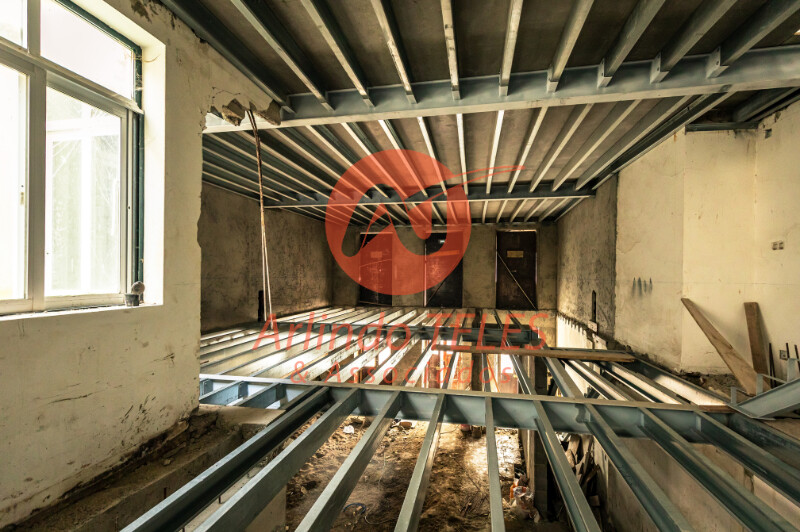 As obras de alteração preveem a demolição da compartimentação existente, incluindo as comunicações verticais interiores.